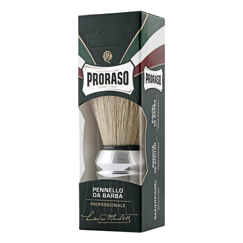 En riktigt bra och prisvärd nybörjarborste gjord av naturhår från Proraso. Den har bra dimensioner som gör att den ligger skönt i handen och hjälper till med att ge volym till rakskummet.